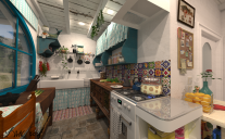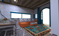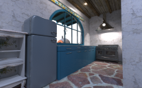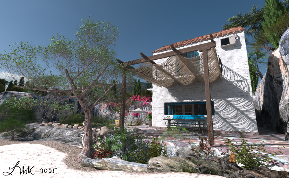 A new roof...using the barrel tiles from Lindsay's Hill Side Villa, plus adding a sunshade pergola to the seaward end, also from Hill Side Villa. Added assorted trees to the cliff top, and tamarisk trees (from Ansiko's On the Beach) to the shoreline. And I spent a day changing and tweeking a set of HDRI, taken of the same area over different days and times so I could have a consistent background with different lighting. That was a learning curve.