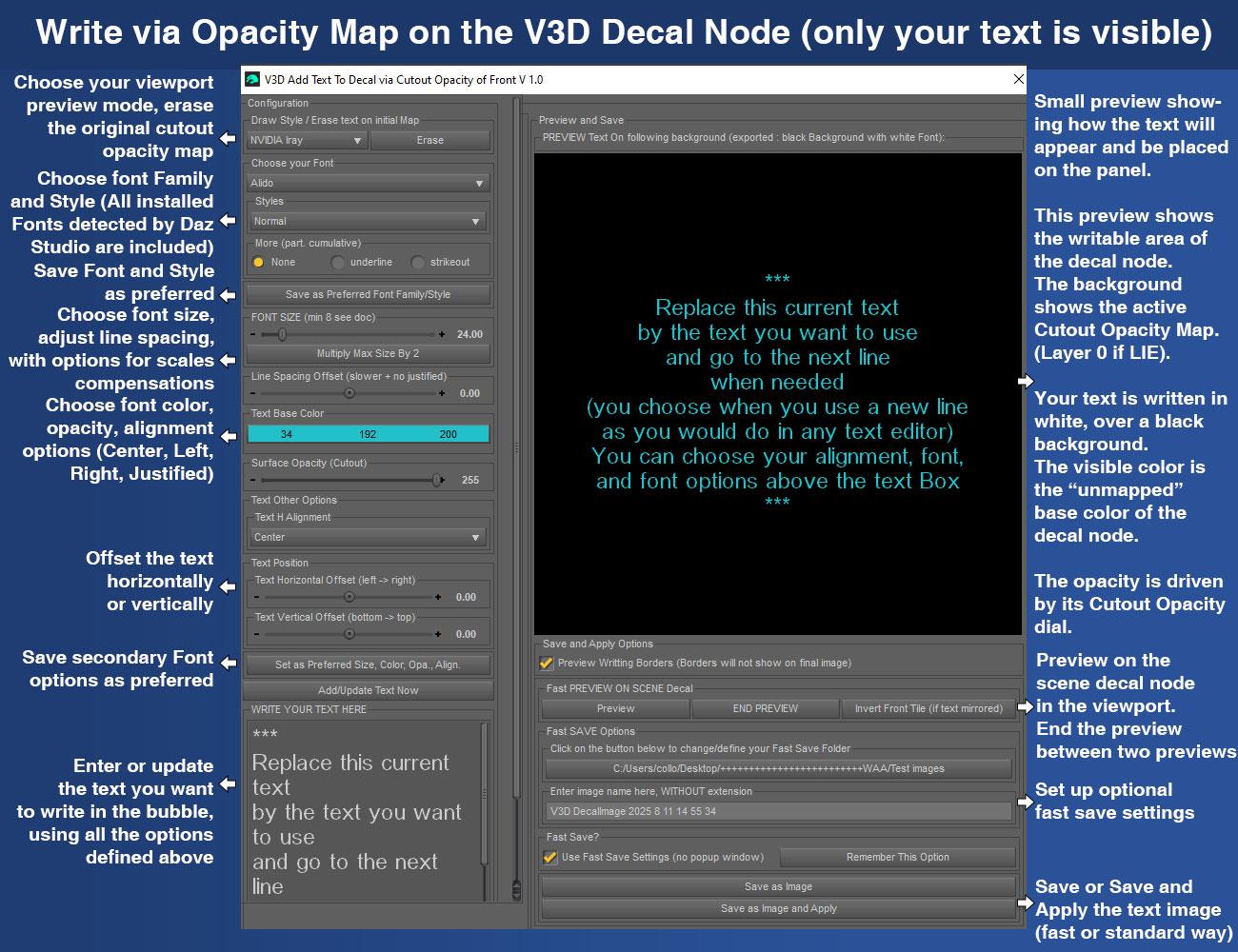 Scripts create optimized decal nodes with the right orientation and even a temporary preview map, so you can see the position and distortion before typing a single letter. Writing then becomes fast and precise, with constant visual feedback.