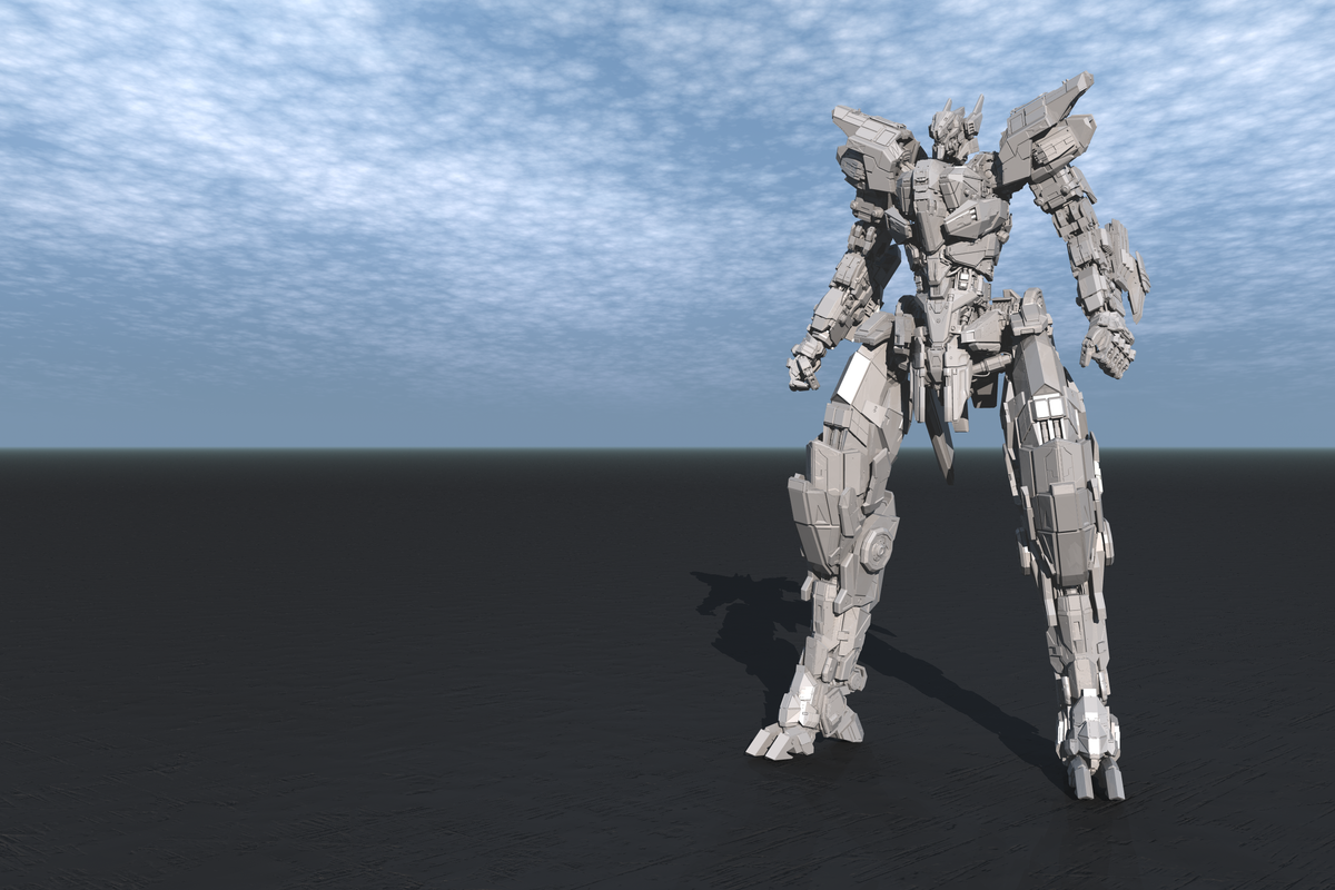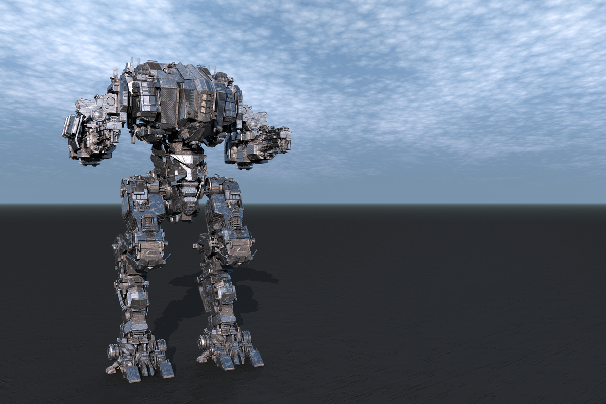 But hey, let's increase the challenge! Another freebie by Megalord, the amazing "Juggernaut" mech that has, like, 10 million polys itself. Wow. (Again, open fullsize to check the detail level). Had to wait, like, 7 minutes during import, but it loaded in the end!