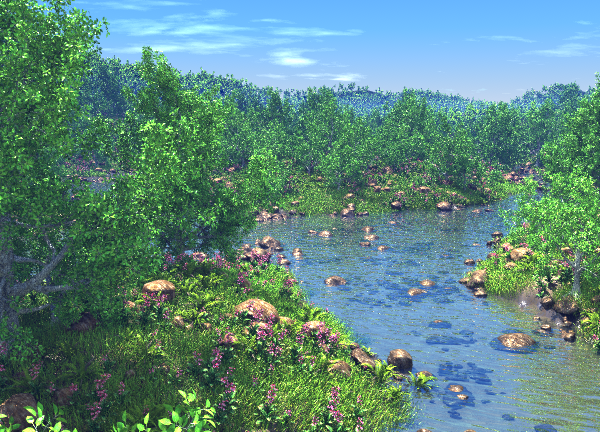 To pull off the MegaScape files LAA was required, and I also had to create vegetation tiles/plates/planes for the grass and flowers. Stones were not tiled, I needed them to remain more random so that the tile repetition wasnt visually obvious.