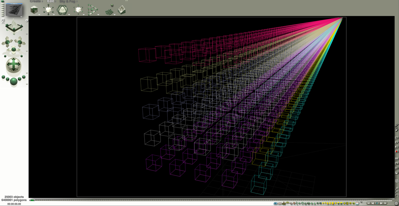 In the same breath as I state that higher polygon models can get you more polygons into the scene, the price that is paid is that Bryce gets less responsive, especially with meshes exceeding 1 million triangles. So somewhere in the middle, probably in the 1/2 million polygon range, where the polygon count is ideal for making lots of instanced polygons while still keeping scene navigation swift.