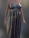 OK, I've got one more practical example of using a black and white map to change a surface. In this screen shot we have the Blazer Outfit, first render with default textures. The second render, all I did was put the 1W map from above in the Metallic Flakes and chose a gold color.
