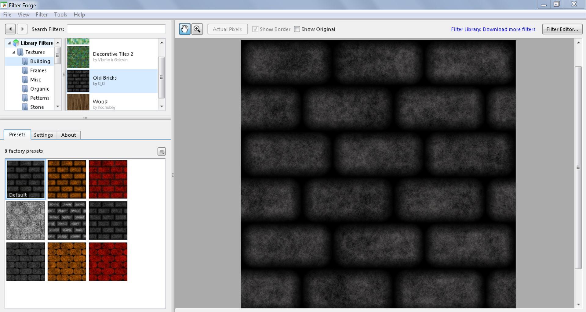 Want a different one? Click on the blue link and it will take you to the FilterForge website. Type brick in the search box and there you are. 376 results.