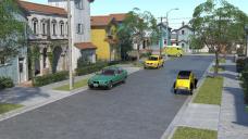 You can swap out the buildings with others. Actual roads, kerbs, street lighting and power/telephone cables could pass for most countries. It is the buildings and a few other mostly US features, like the picket fences, that you need to swap out. Here I hid the suburbs buildings, and replaced them with the houses from another Stonemason set "A Village by the Sea". This gives the scene more of a Mediterrean feel.