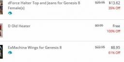 * The better gift card sales aren't always advertised as gift card sales. Often it's a deal for X% off your entire cart and it works on gift cards. Sometimes the fine print will say it works on gift cards. Sometimes gift cards aren't listed among the exclusions, but you can't always count on that being accurate because Daz marketing frequently neglects to disclose all their terms. Good practice is to just throw a gift card in and see if it works. If it does, check out, because there's no telling if Daz will realize they didn't actually mean for it to work and suddenly it'll jump up to full price.