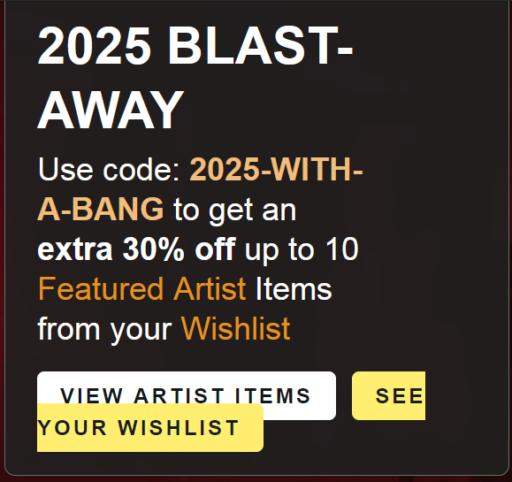First there is an issue with the 2025-WITH-A-BANG code returning a coupon not valid error when selecting  an item from the wishlist after clicking the link provided in the promo;