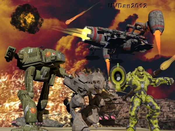 Unstoppable. All the actors were posed in DAZStudio 4 Pro and then ported to Bryce 7 Pro for the Render. There is a mixture of freebies and products here and I enthusiastically endorse every last one of them. Thanks to Horo and David Brinnen for making such excellent Bryce textures and to Mestophales for the almighty BEO2K.