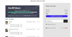 All these are Daz Originals not platinum club, I do not own any of the, and yet every month my coupon fails what is going on? years ago, you picked up a Daz Original with the coupon tossed it in your basket and waved hello to the cashier as you walked away with your prize. Whats going on it doesn't work I have raised tickets about this issue and recieved no help. Does anyone else have this problem, is there a magical rabbit hole I am missing, should I pass go and run.