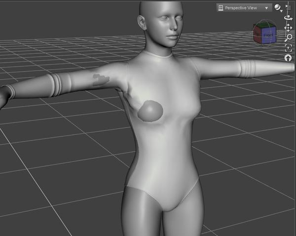 The image is a V4 leotard I autofitted (I also tried it with the Transfer utility), dial up any morph and the right side distorts. As well as it's own polygons the right collar also has polygons assigned to it from the hip, right thigh, left thigh, neck, left shoulder, left forearm and left hand.
