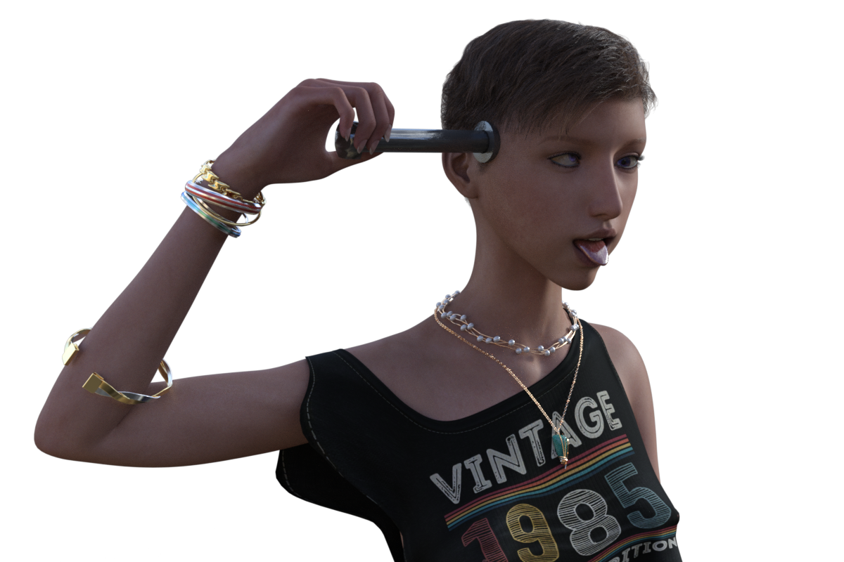 I was meaning hiding the neck/temple facets with the geometry editor. I'll be saving the nut, bolt & spacer as a normal support asset with a bolt withdrawal morph and a spacer length morph, then saving as a wearable preset on different generations of character. Might as well make it usable on G2-G9 so anyone can have a bit of fun (do many people use G1?) and also for my TriAx V3 (probably not distribute that one). The hidden facets will need to be different for each generation and I only want to save a single support asset to keep the load on people's machines to the minimum. There are 684 facets and 516 vertices, so it's not excessive.