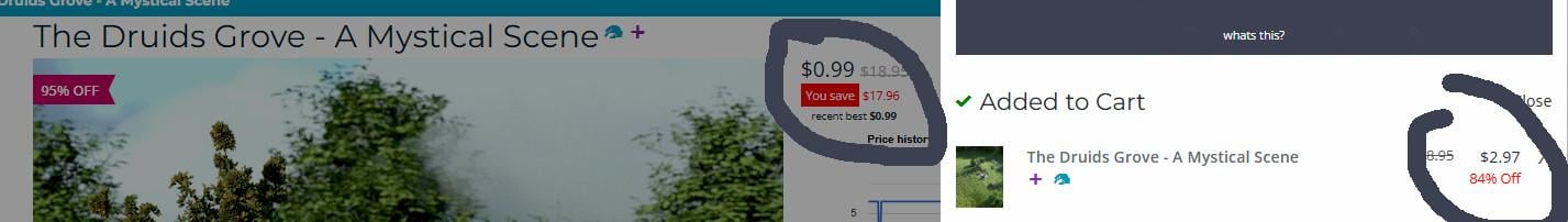Some quick grab prices are different in the cart than they are in the store (Daz+)