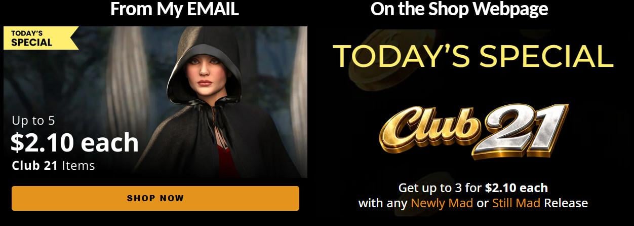 The Mad Artists Stores are supposed to include Daz+ Items, but there is only one so either the plural on Items is wrong or Daz+ items are missing (not surprising considering that the Pillage Daz+ is running today too):