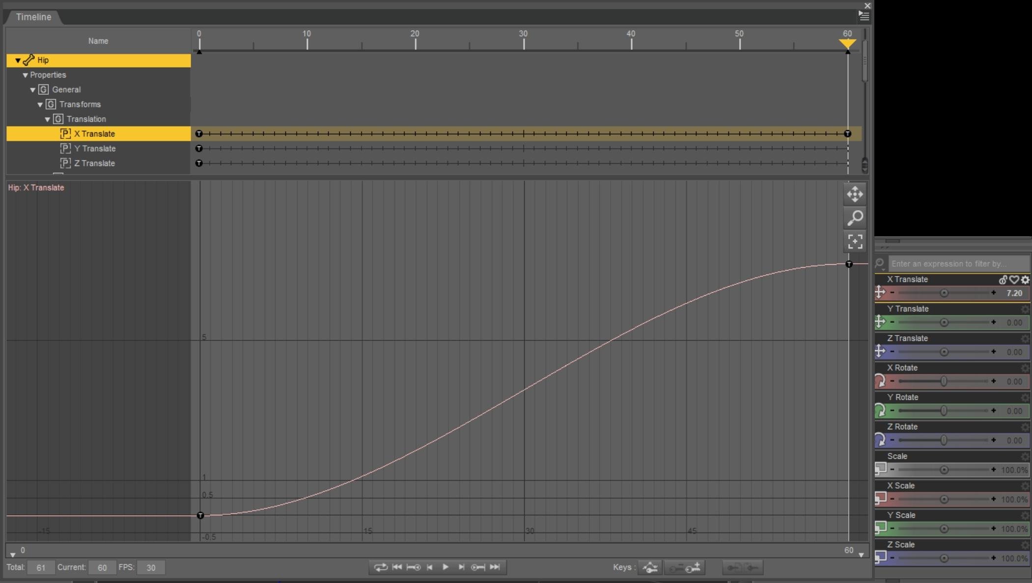 Image 8: All X Translate Keys are set to Linear interpolation. I save the Timeline as a Pose preset, clear the Timeline and clear aniMate2.