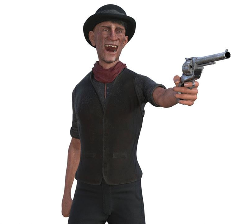 I didn't see any way to automatically put the gun in his hand. Do you know how to do it?