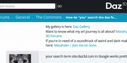 I type in DAZ, or DAZ Forums: "the issue that interests me" into google, and that's how I find anything as the forum's search engine is not that great…