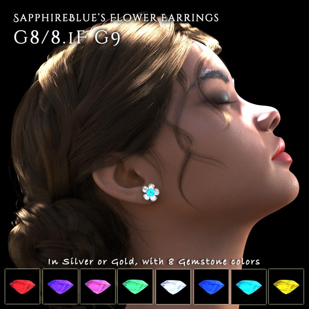 People > Genesis 8 Female > Accessories > SapphireBlue > Flower Earrings