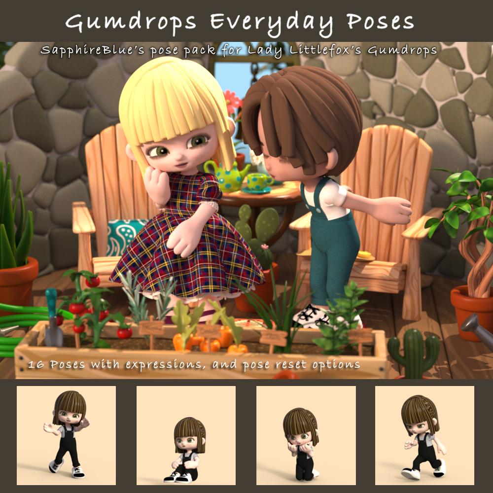 - 2025 Nov: Pose pack for Lady Littlefox's Gumdrops characters.