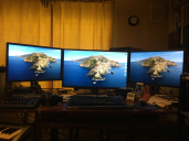 The image is my screen setup, with the 32 inch monitor in the middle and two Dell 24 inch monitors flanking.  The photo was taken when I was still using the older 32 inch monitor but naturally it hardly looks different with the new monitor as it is the same size.