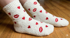 Hi, I'm looking for socks for Genesis 9 that are similar to the ones in the picture below. They are fluffy white socks with red hearts and lip prints.