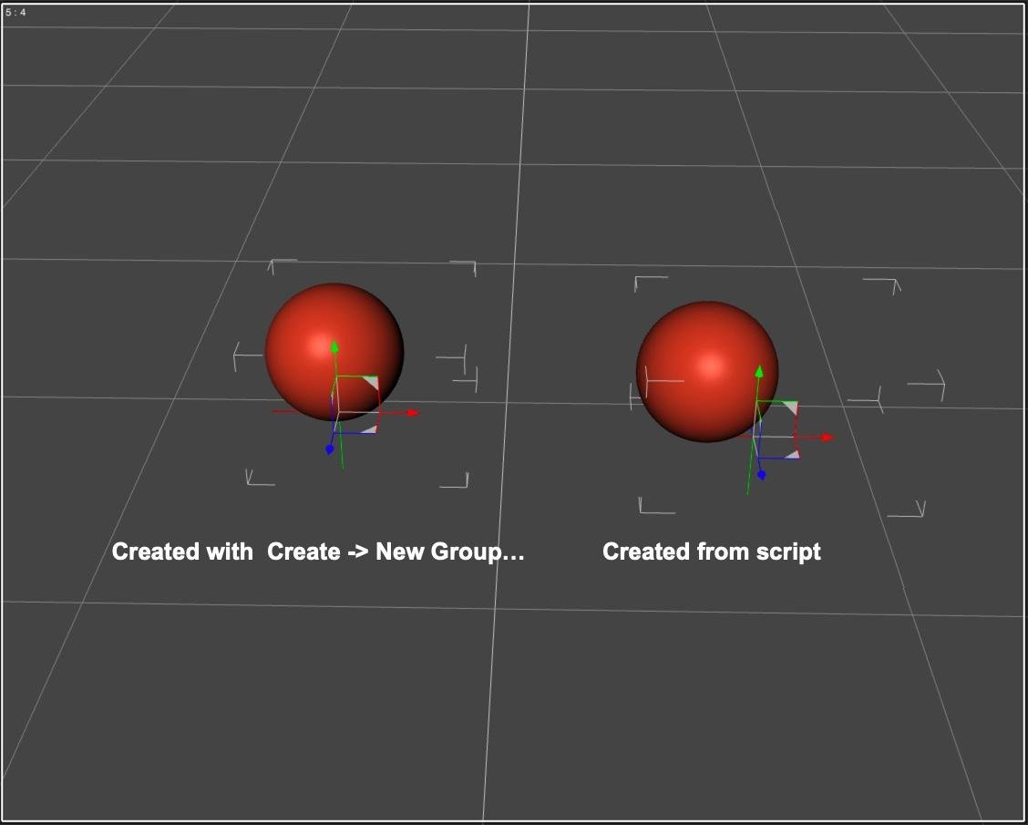 I have some issues to get a DzGroupNode created in script to behave similar (give the same results) as a DzGroupNode created using Create->New Group... and enbedding the selected node into the group. See attached image,