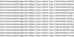Once you decide how many image maps you will need to customize, copy appropriate ones from the military uniform's Textures directory. You can find it by hovering your cursor over the image in the surfaces tab; the location of the file will appear in a pop up; see the second attached image for an example (it will probably be in your Runtime directory, perhaps in a subdirectory with the creator's name). Place the copies in another directory you can find easily later.
