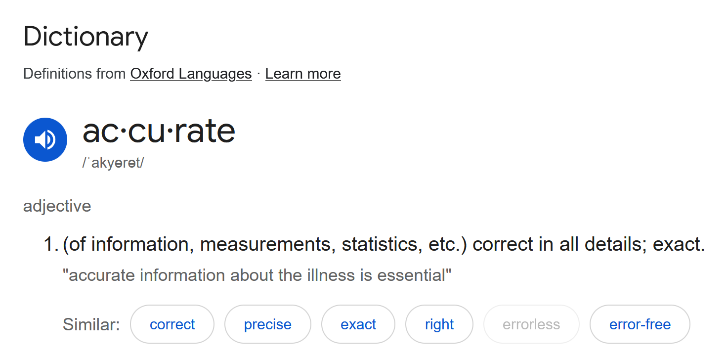 Google (and probably every other dictionary of English language) lists “precise” as a word similar to “accurate”. I think your lab bosses should be fired if they would fire someone for saying those words are nearly synonyms.