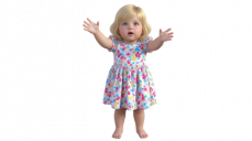 Make little younger 6 months old in crawling position Different toddler outfit Different toddler hairstyle or haircut and color transparent Background