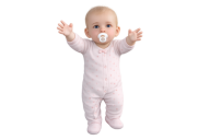 Just tried experiment used 1 year old girl template put Make little small to 6 month old baby size shorter arms and baby hands and cute baby girl cute footsie outfit and baby hair transparent background