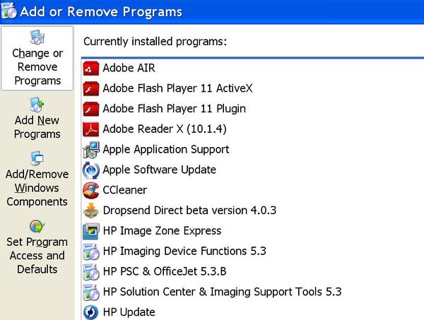 Marcus could I get a screen shot of Add/Remove with the D's listed before we go any farther please?
