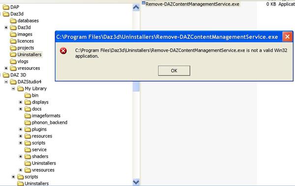 Thanks. The bogus uninstaller deleted ok, any particular order for deleting everything else ? Incidentally there's no Daz products in Add/ Remove Programmes....