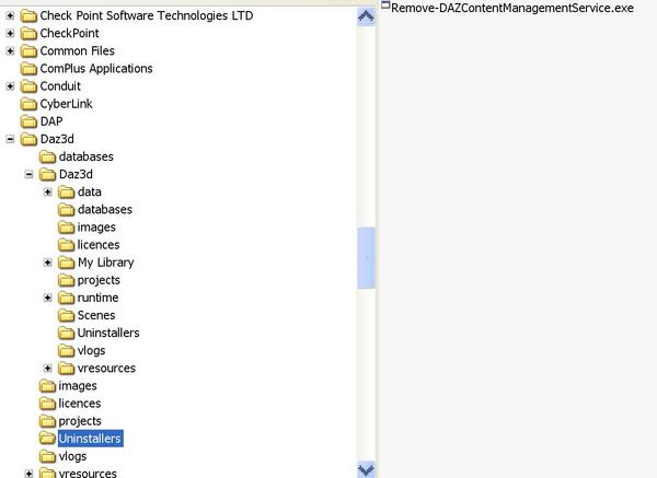 Never having uninstalled before there's 3 things I'm still stuck on. First I've found a remove Daz Content Management Service.exe in the Programme File as in the attached pic. Second I've no idea how to uninstall DS4.5 as the two uninstallers in Docs and Settings are empty as indicated by the 2 lines in the previous pic. And third I've also found a Genesis uninstaller also as per the attached pic which I've done but no idea if it was uninstalled or not.