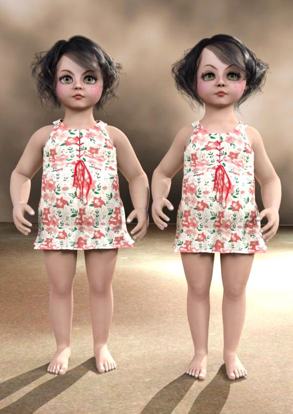 The Kids 4 figure is on the left and the G2F figure is on the right.  I'm going to have to work on a render with her now that I have her saved as a preset.  I'll have to think of something suitably creepy.  One advantage of doing these side by side renders is that I can load all of the materials onto the original figure and then save them as .duf material presets which I can then easily load onto the G2 figure.  Lily Fae comes with 9 Face mats in Poser format and 9 eye colors, none of which I can use directly on the the G2 generation.  If I do too many more conversions, I'll have to do some research and see if there is a way of converting Poser mats to .duf mats without loading each one and then saving them.  I'm sure there must be a quicker way to do that.