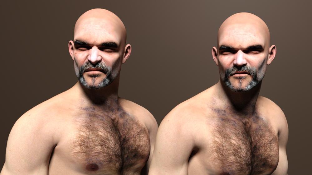 Second image is the one I put in my gallery and wanted to remove.  I put a different skin on the G2M Daemones figure when I was having issues getting the original skin to work.  The skin is one of my favorites, Jepe's Madoc with Iray presets.  Unfortunately, he definitely has an unintended sleepy eyed look that gets worse when you dial in any kind of expression.  He is a little too pretty in this image and looks much younger.  I absolutely love the original skin that comes with Daemones so will have to do more tweaking to get it looking great in Iray.