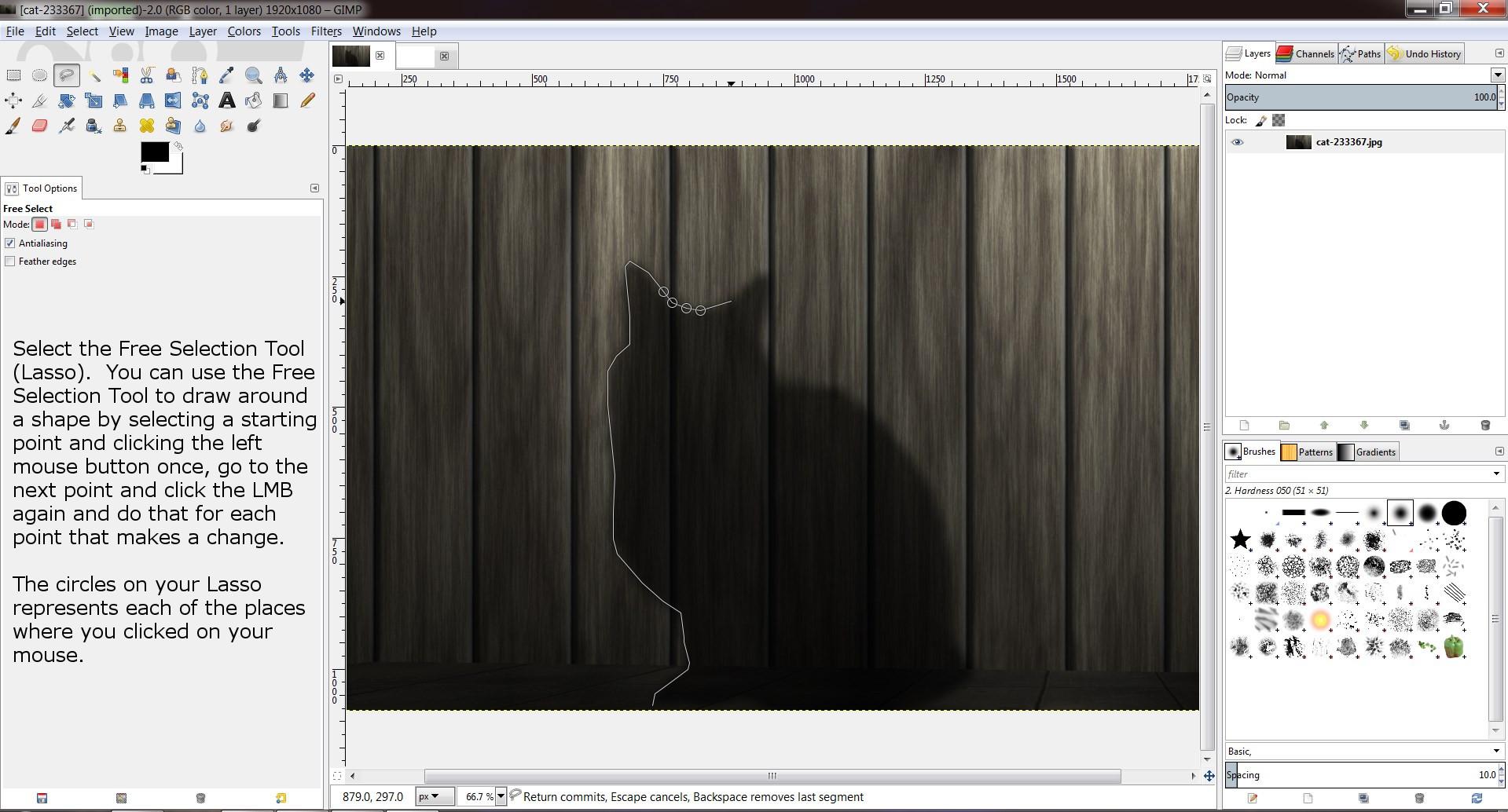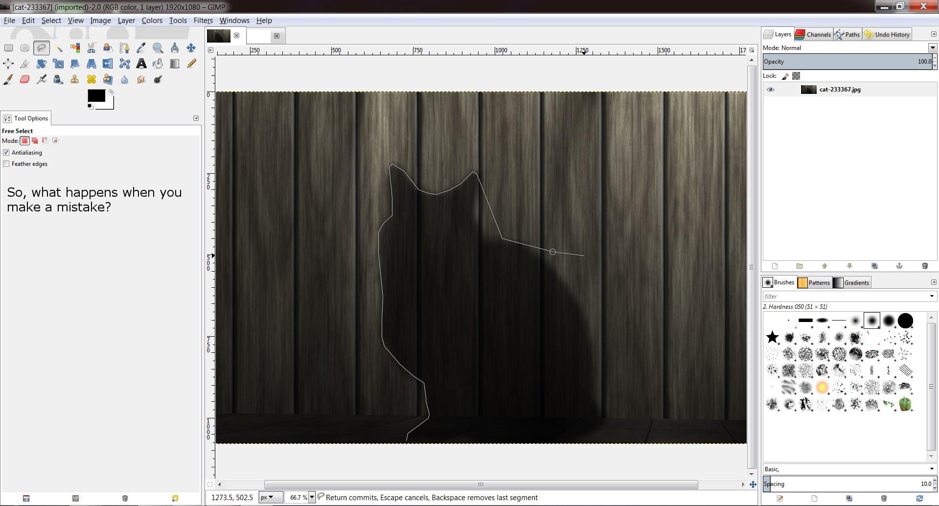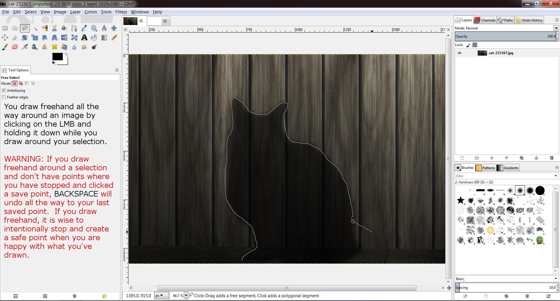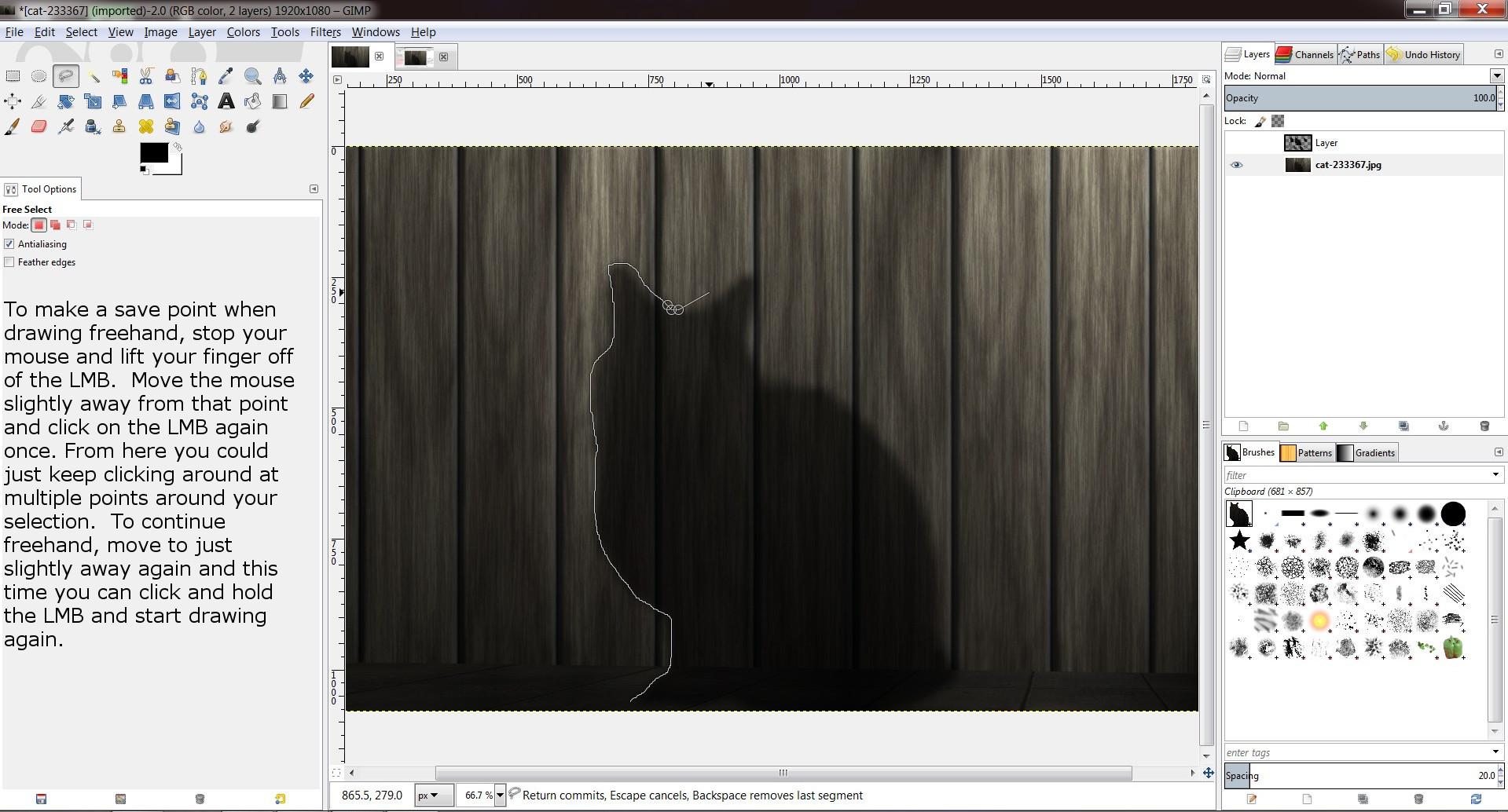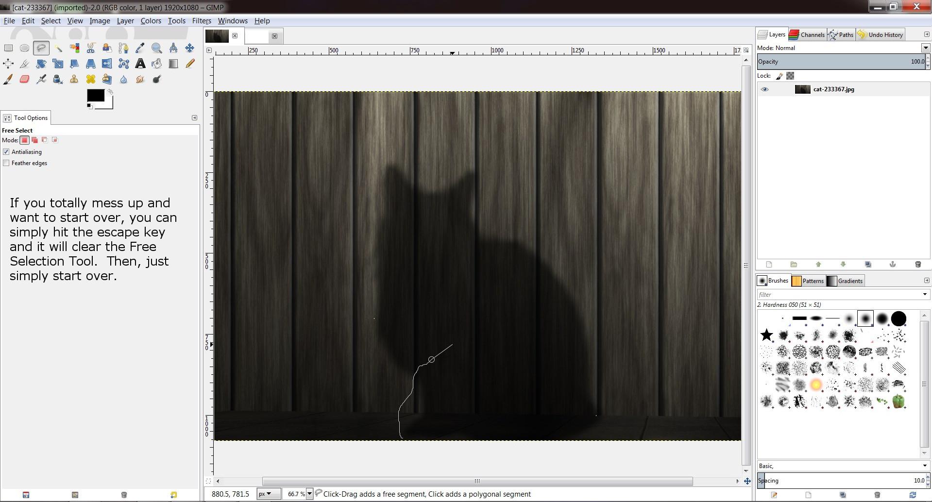 Gimp Tutorial Part 1 Free Selection Tool