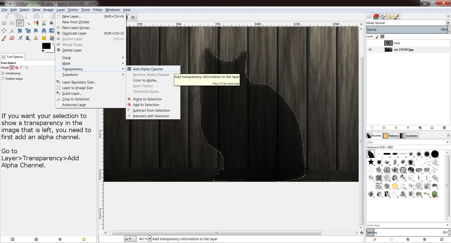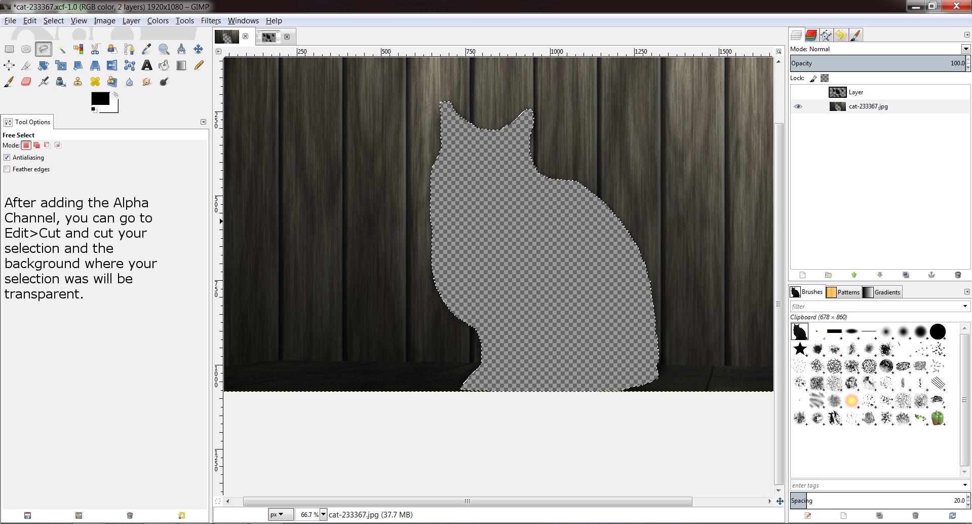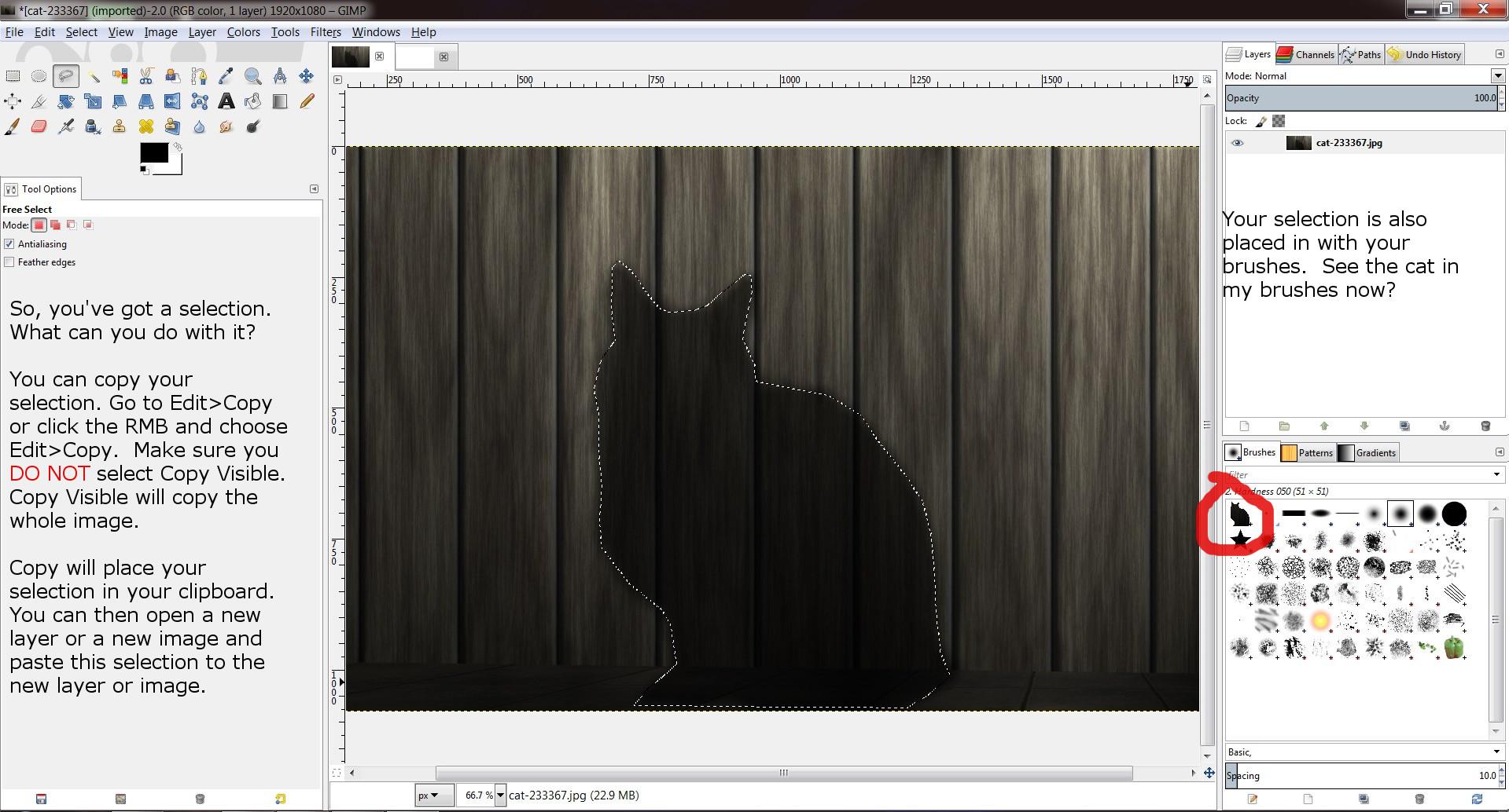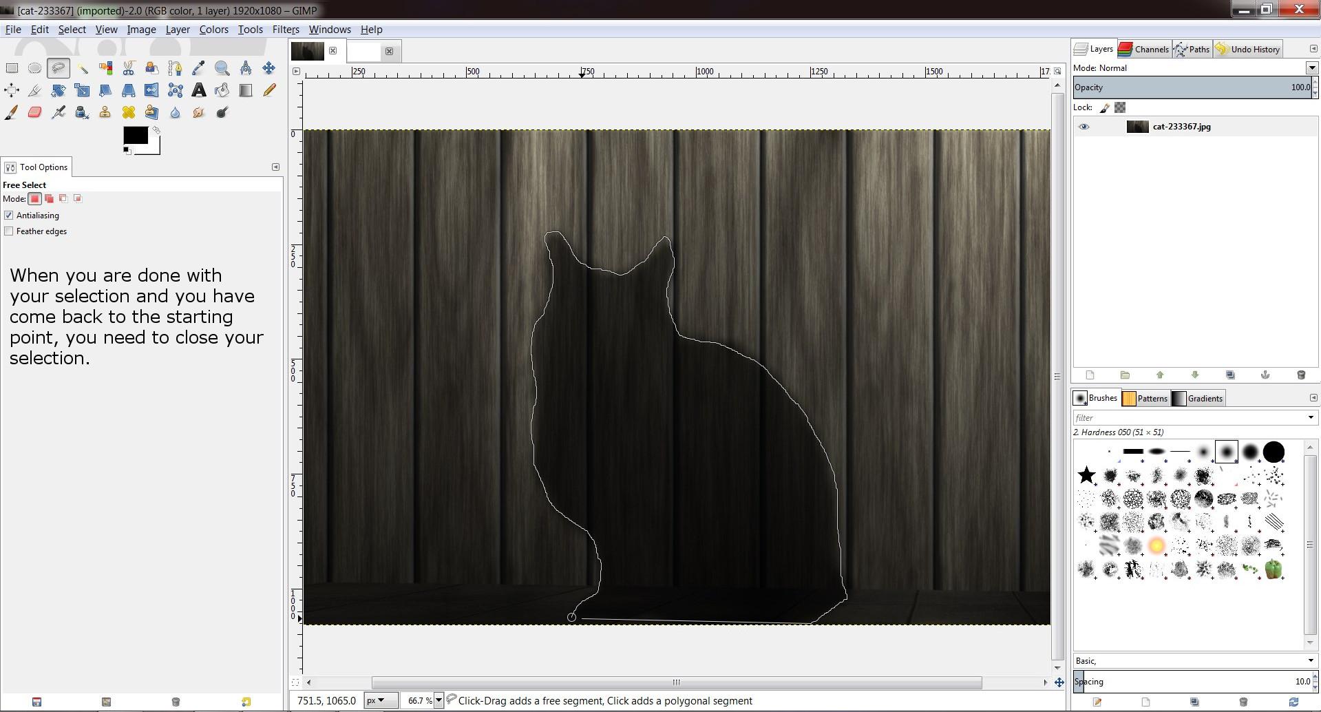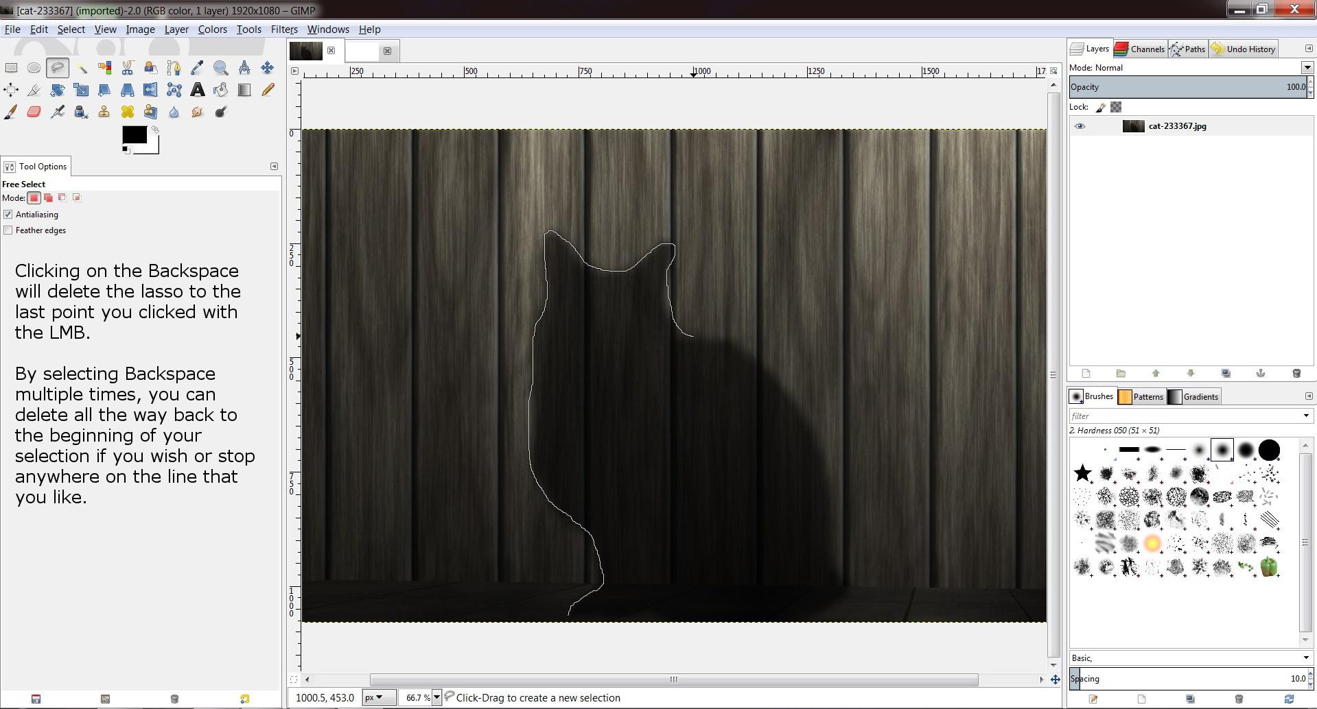 Gimp Tutorial Part 1 Free Selection Tool