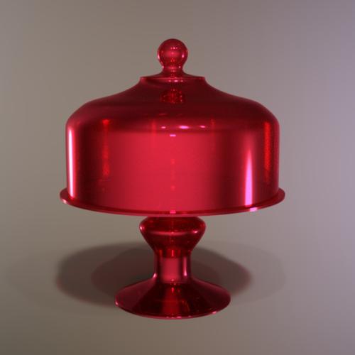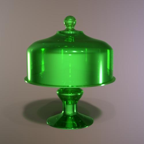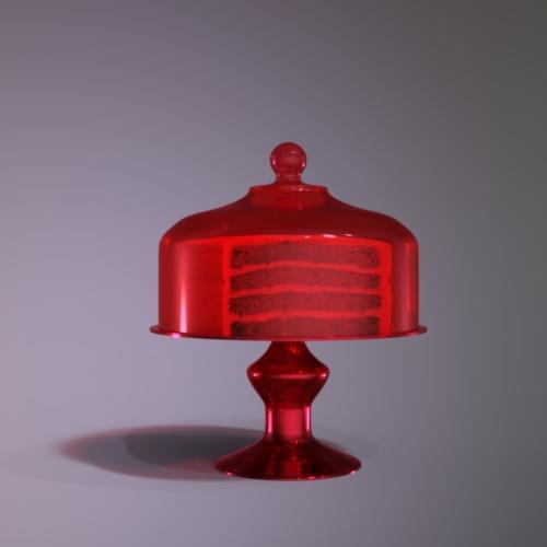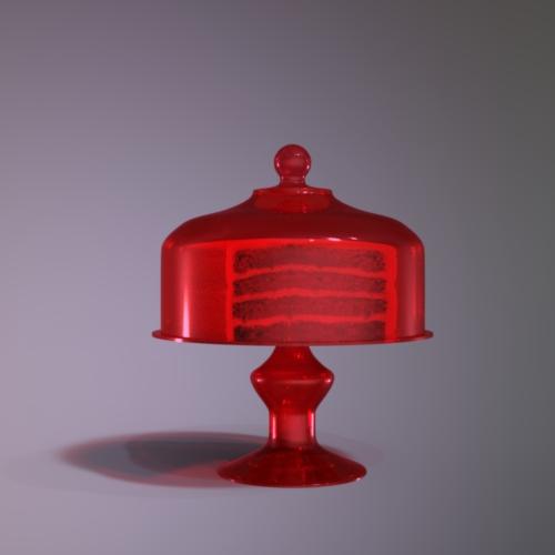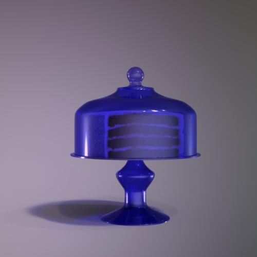 So, just a slight update to my glass shaders.  After a discussion with @Isidorn about them, I put some cake under the dome and rendered again.  While visible, I wanted to see what was inside the cake dome a little better.  So, I made some slight adjustments and got a little closer to what I had in mind with these shaders I've been playing with.