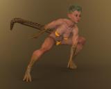 For this test render her I have in the Alphakini which I'm not real fond of.  I have no idea why I even bought the bundle.  It does autofit to G3F really well, though.  The material preset from the Future set for the bottoms happens to fit perfectly with no modifications needed.  You can't see her tail base in this image, but the back of the bottoms rides just below the tail and does go perfectly with this character.  Unfortunately, the future theme doesn't really go with the idea I have playing in my head for this character.  The Badlands Maiden, though, perfectly suits the idea I have.