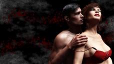 Really nice posing here, on a qucik glance the two characters look pretty darn real, nice unique features, and the deep red rcrimsom works well with the blood theme. I think white lettering with a black drop shadow will give the best contrast and make the wording stand out against the dark background and the drop shadow help it stand out against the light.