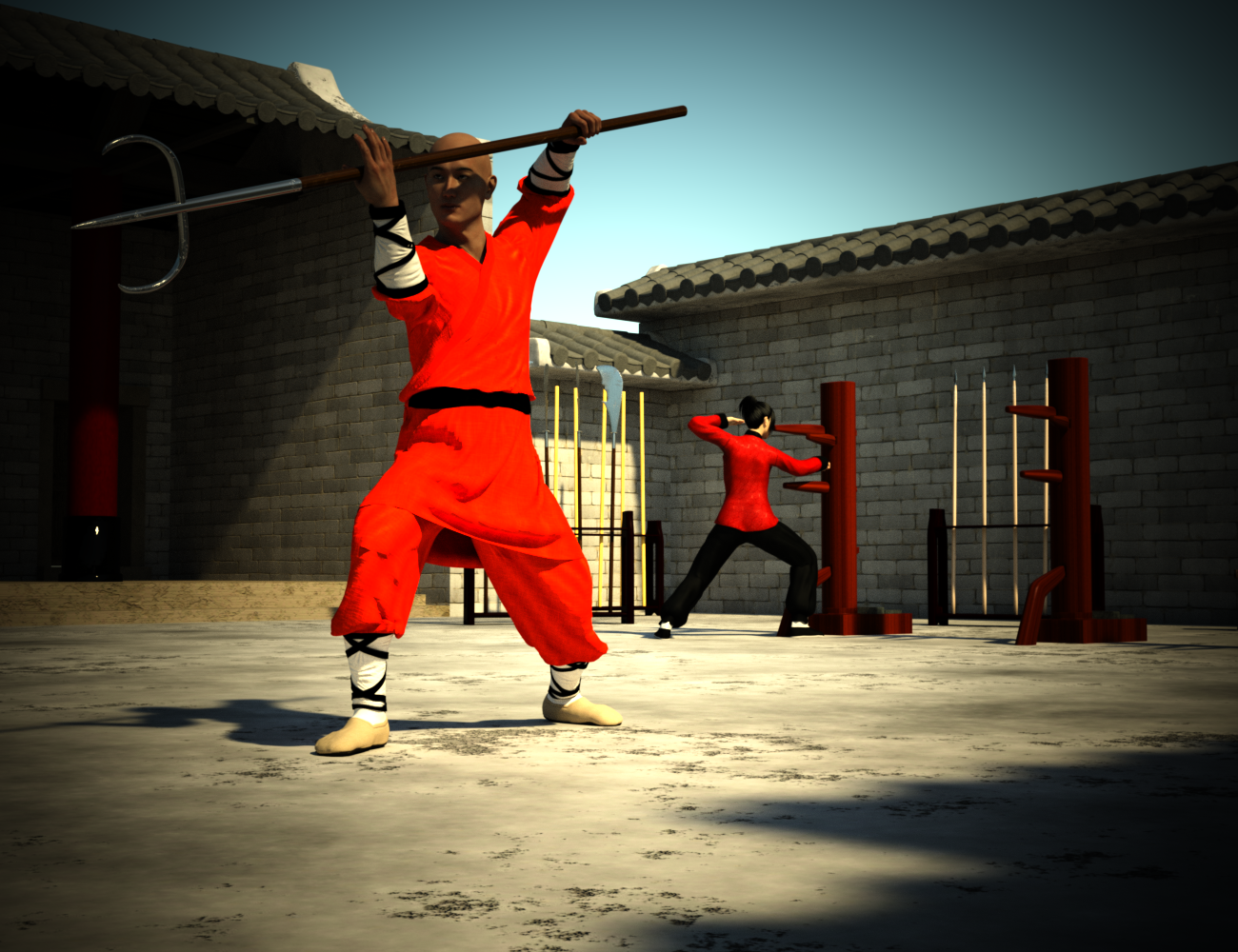 I did volunteer to test a potential new product here at Daz. It's still in the works so hasn't been submitted. Silent Winter is making this really cool Kung Fu School and it looks great. Here is my first real render that isn't just a test. No postwork. Sun/Sky is the only lighting used. Of course, I played with the tone mapping. I think it turned out pretty good. Check out his thread in the Commons.
