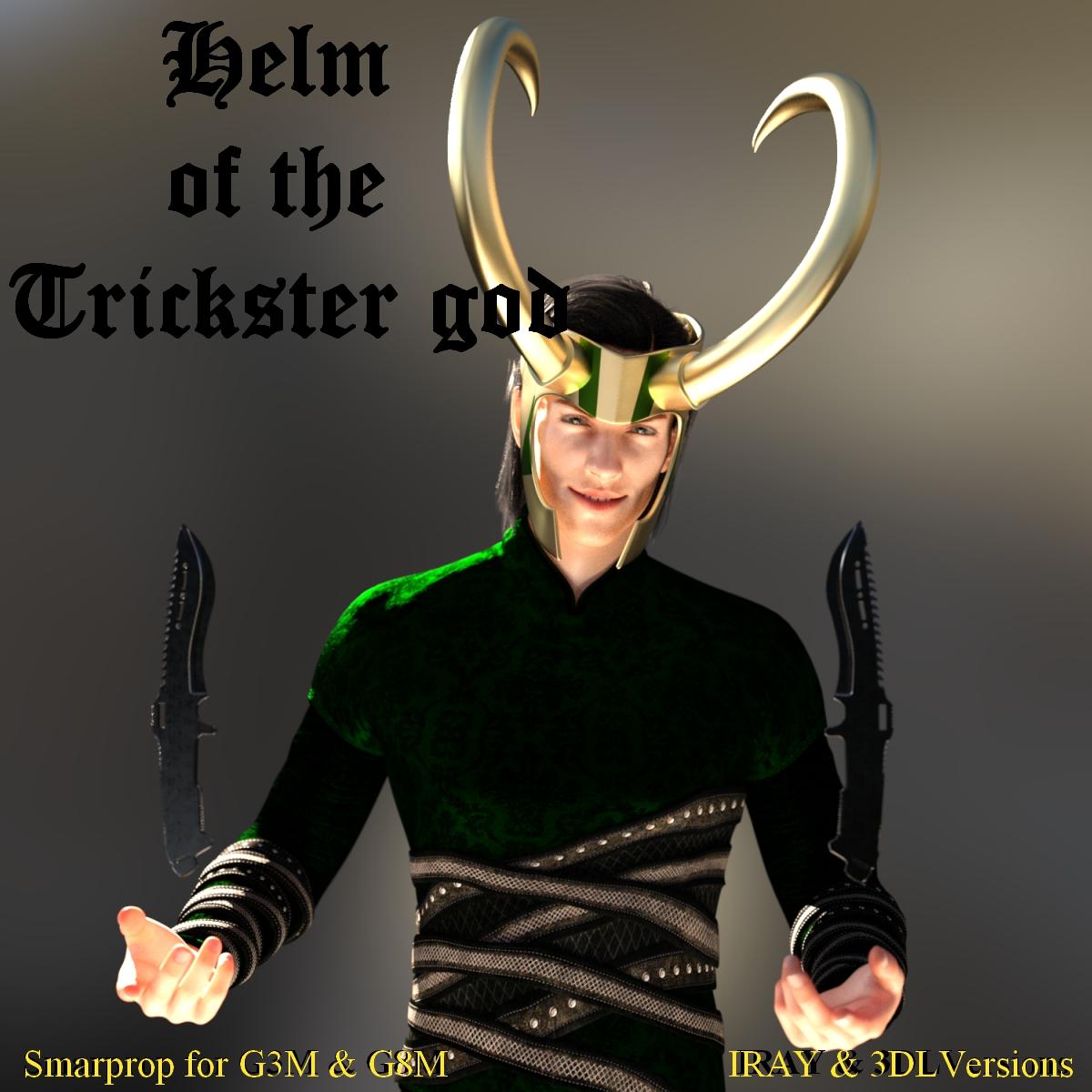 This Loki's helm, modeled after the version he wore in Thor: Ragnarok, modeled in Blender. It's smart-propped to G3M's or G8M's head. Iray and 3DL versions included, images used for the texture painted by me.