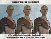 - One of my beta testers used a darker preset on the legs and on the rest of the body for one of his render, but the "transition" from one body surface part to another was hidden by the outfit (lucky boy!).This is the easiest when you can hide the transition between two material areas, then you don't have to bother more than that.