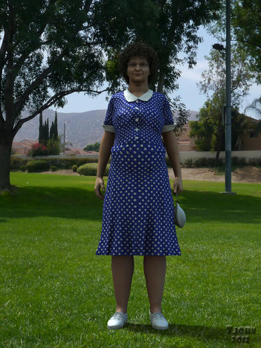 @tjohn --The instructions you posted work very well. Thank you for posting them. No distortion of the skirt texture and knee nicely placed under the skirt and the apron. I am pleased to be able to use the waitress model for a project. I did have a chuckle at the matronly woman wearing a polkadot dress in the park. Humor helps!