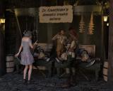 I am in a bit of a quandary, here.  I've got all of the elements for the final scene in the story, but when I put them all together and try to render it, DS crashes: out-of-memory.  And it takes for-freakin'-ever to get to that point; the machine becomes unresponsive for long periods of time (twenty-some minutes between updates to the system clock, even!  Hell, it takes almost that long just to load the damn thing in the first place!)  It is a pretty massive scene, I'll admit: a total of a dozen figures, if you include the vehicles -- which I do -- plus  all the clothing, and the environments; and there are two of those.  Easily the biggest scene I've ever put together.