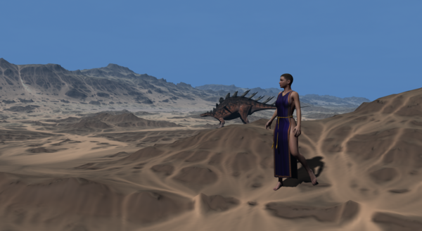 Creating landscapes for some work I'm doing. As you can see, the landscape looks better the further away from the camera it is. This of course looks a bit off when there are close figures that are in focus and detailed. This was setup and rendered in DS4.5.