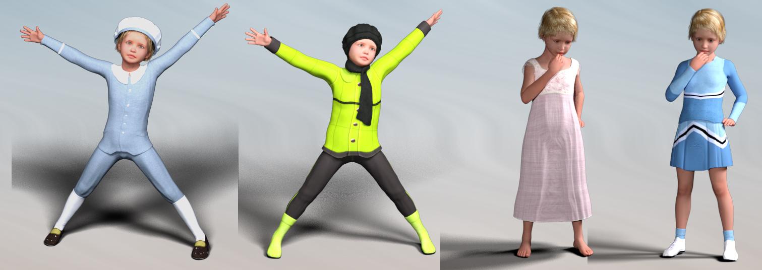 Ehhhh, I'll admit I'm sort of tempted (on the rare occasion I'd ever do anything involving kids), but the fact there's no way -that I know of- to transfer clothing/items made for K4 to Genesis/G2/G3 (to use on characters made with Zev0's Growing Up morphs) makes me take pause. I'd still buy Esha's Patchwork shoes (Based Esha for giving us multiple heel options that are interchangeable) regardless, so I guess the K4 bundle wouldn't hurt to tack on there.