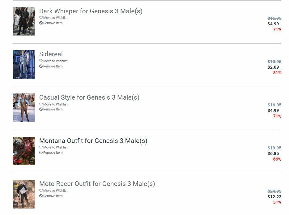 Dark Whisper, Casual Style and Moto Racer Outfit don't have any additional discounts. Montana and Sidereal do. Weird. Wondering if they are in a category that goes on sale tomorrow or was on sale recently, so the algorithms are off.