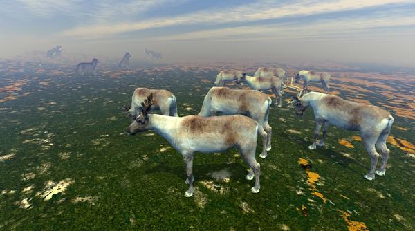 Image 1 is the full scene with LAA enabled. Four is the maximum wolves adding another one crashes Bryce when trying to save the scene although it will render it.