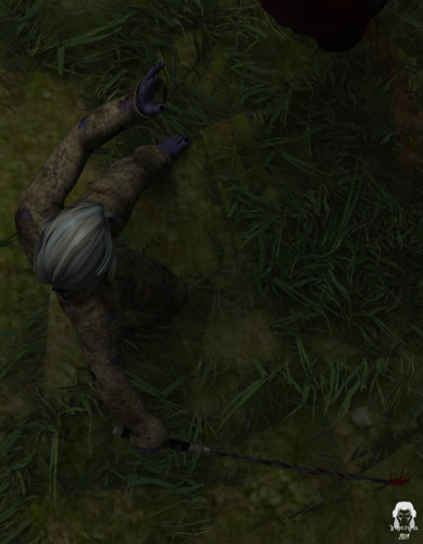 The singing of what must be some sun heralding bird brought me to myself. I drag his body over to lay beside his companions. My people named me traitor, they call me enemy. And now I find myself reduced not only in their eyes but in my own as I am reduced to robbing from the dead to better my chances of survival in this upper land. This new world I will now be forced to make my way in.