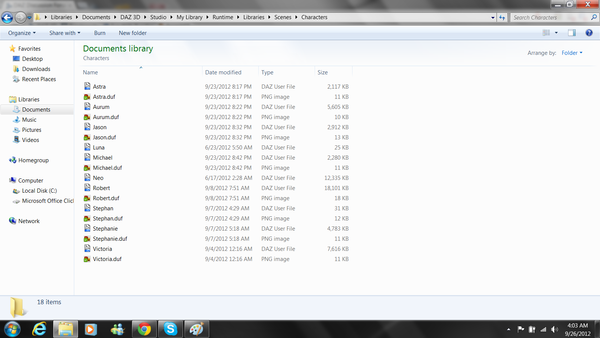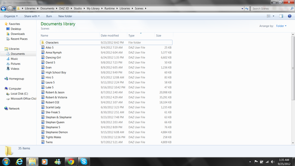 Actually, most of the ones you see in the original screen are in a sub folder called "Characters". This folder can be seen in the second screen. However, as you'll also see, files like "David 5", "She-Freak 5", and "Stephanie 5" are actually saved in the Scenes folder outside of that.