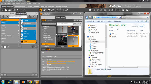 In the screen grab below you'll notice that I saved a test Studio .duf scene to the Poser runtime Scene folder. It does not appear in the Content Library pane but is located in the Runtime\librarys\scene folder.